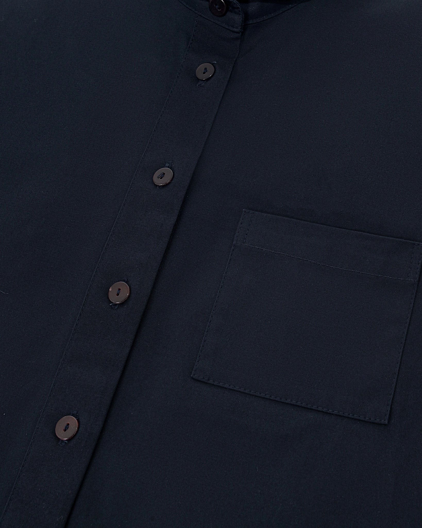 Áo sơ mi là món đồ mà mọi cô gái đều cần phải có trong tủ đồ của mình. Với áo sơ mi, bạn có thể kết hợp với nhiều loại váy, quần để tạo nên những bộ trang phục đẹp và thanh lịch. Được thiết kế lá cổ tròn cách điệu, màu xanh navy thanh lịch, bạn có thể mặc đi làm hoặc đi chơi đều rất phù hợp.
