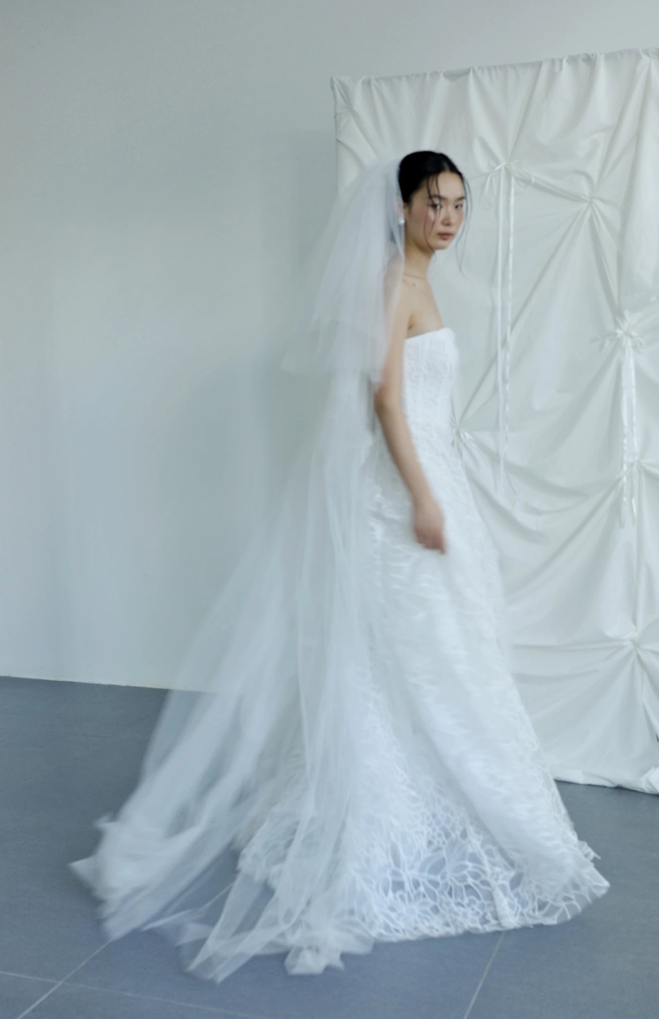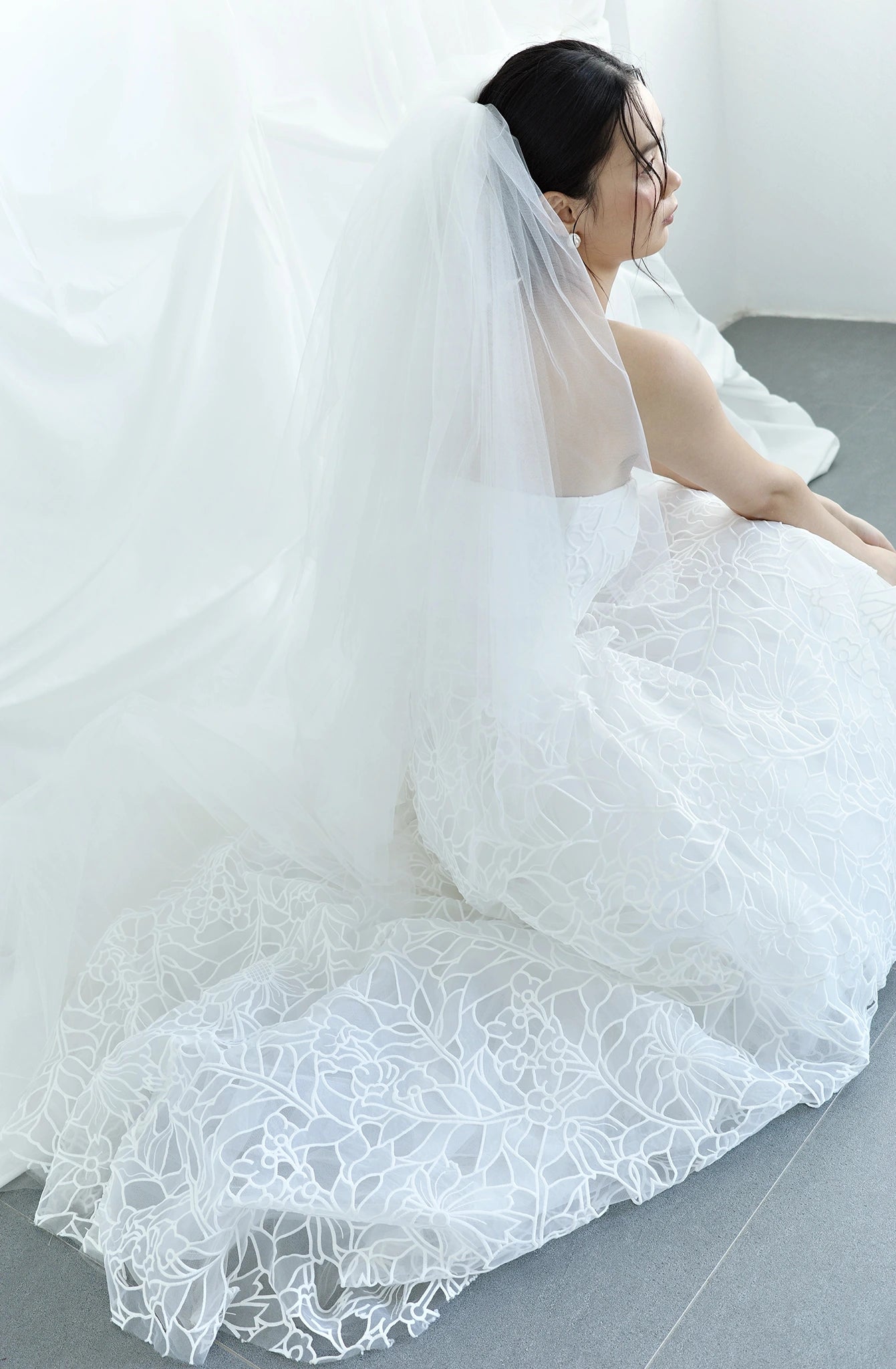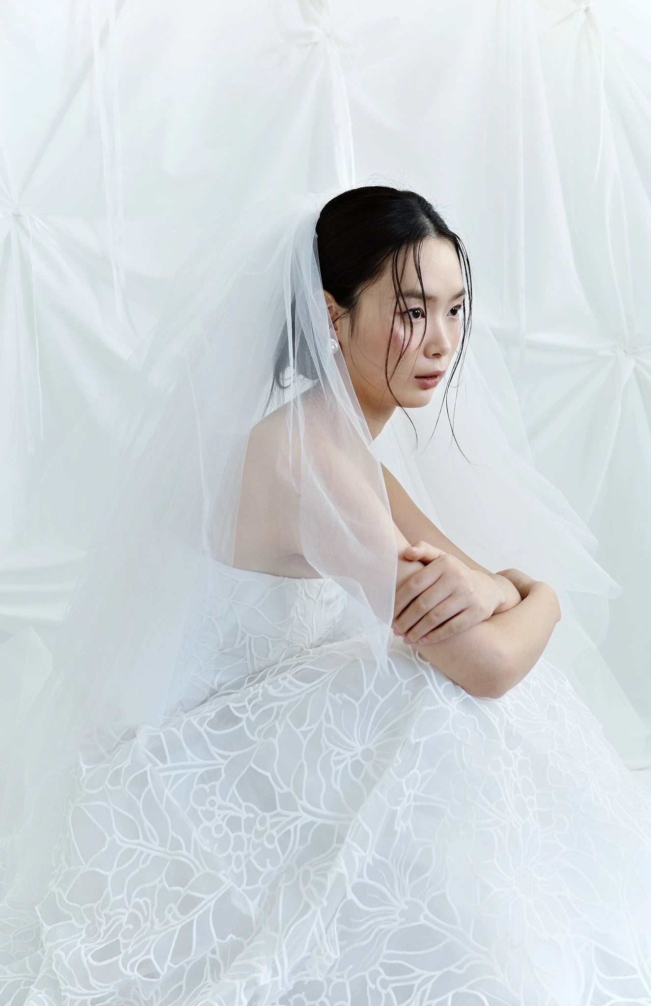 Chất liệu: Polyester Organza embroidered Lace, Crepe Lining