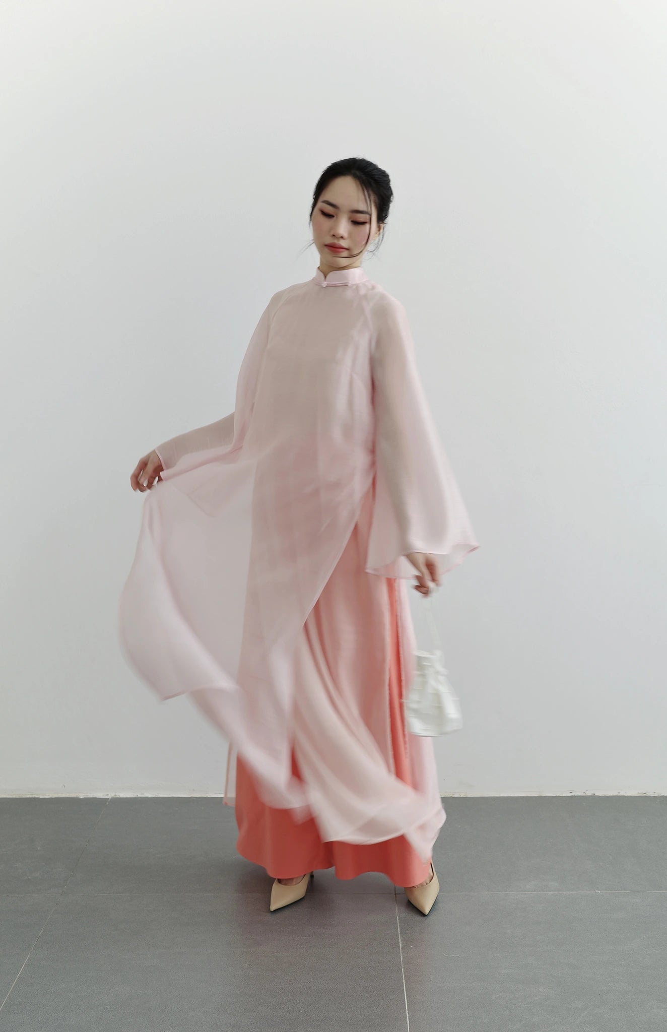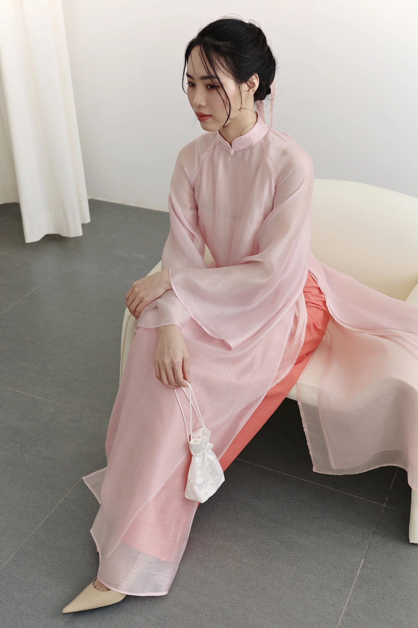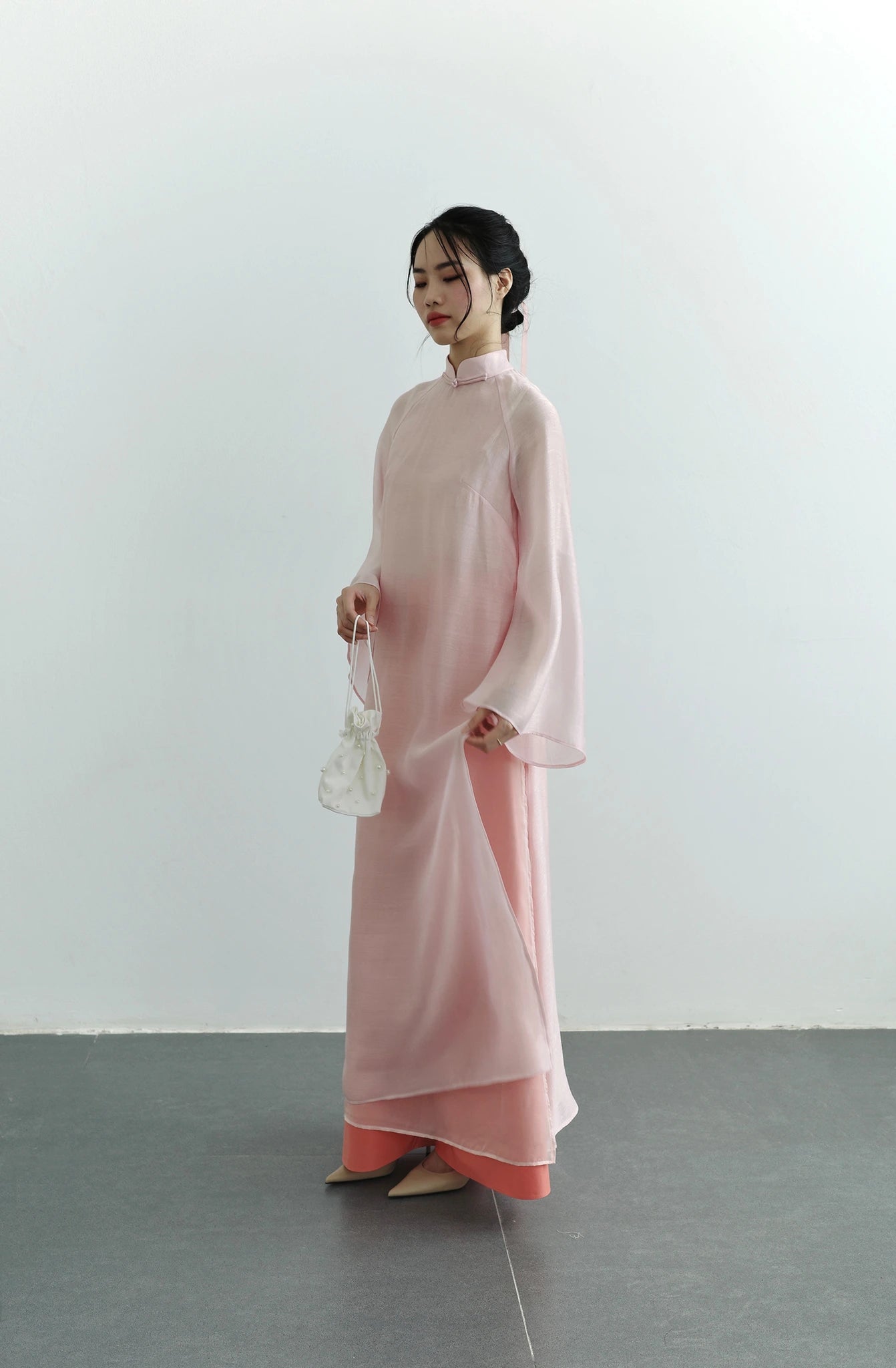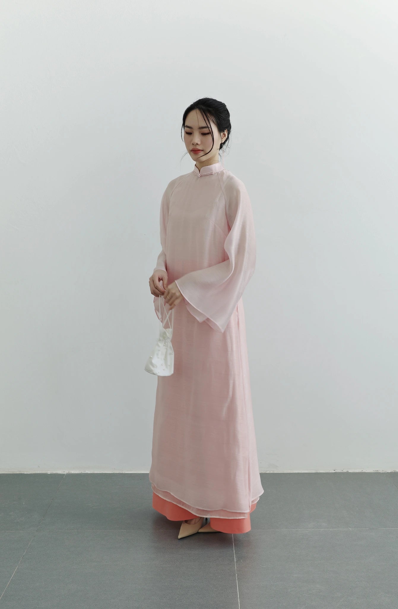 Set áo dài phom rộng màu hồng nhạt - S1994C