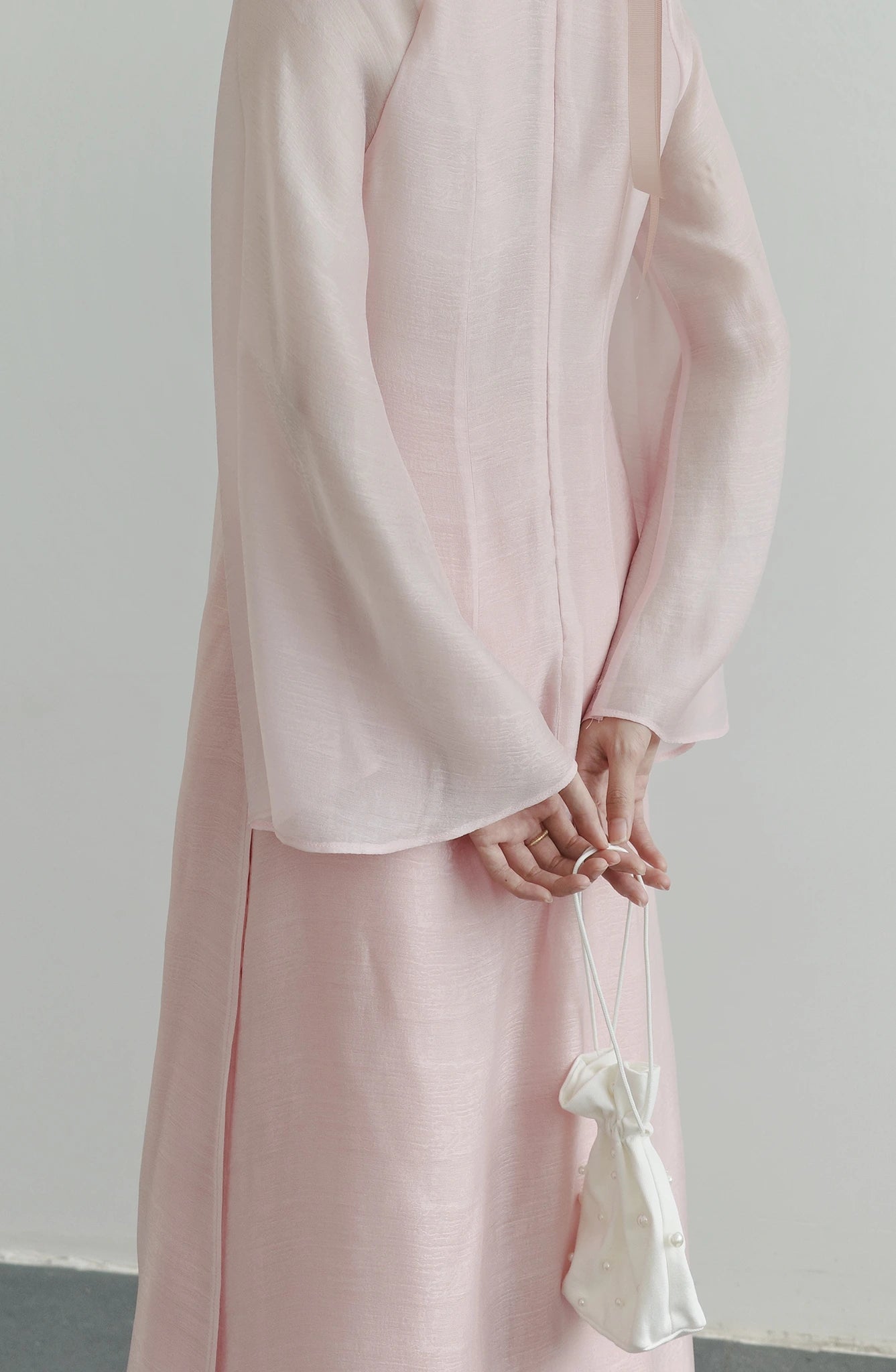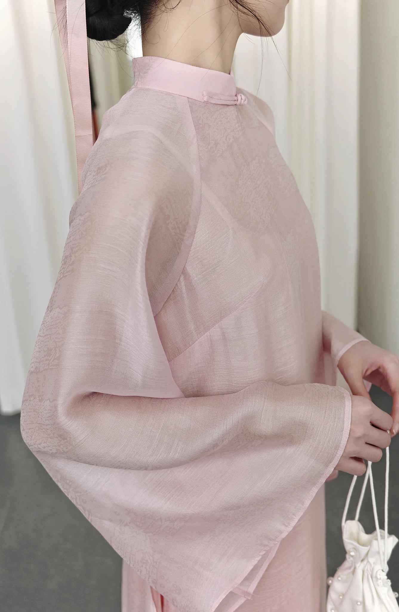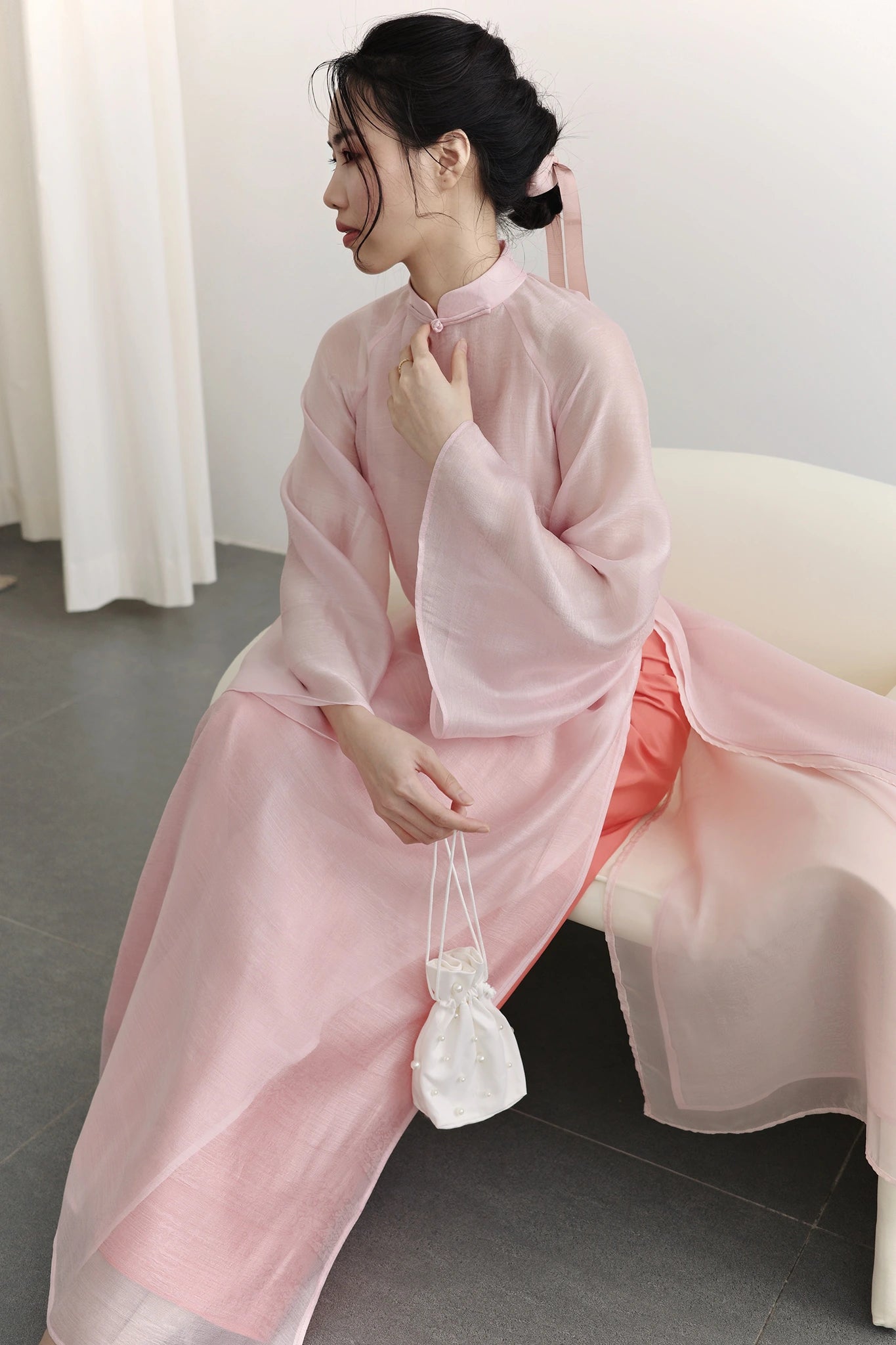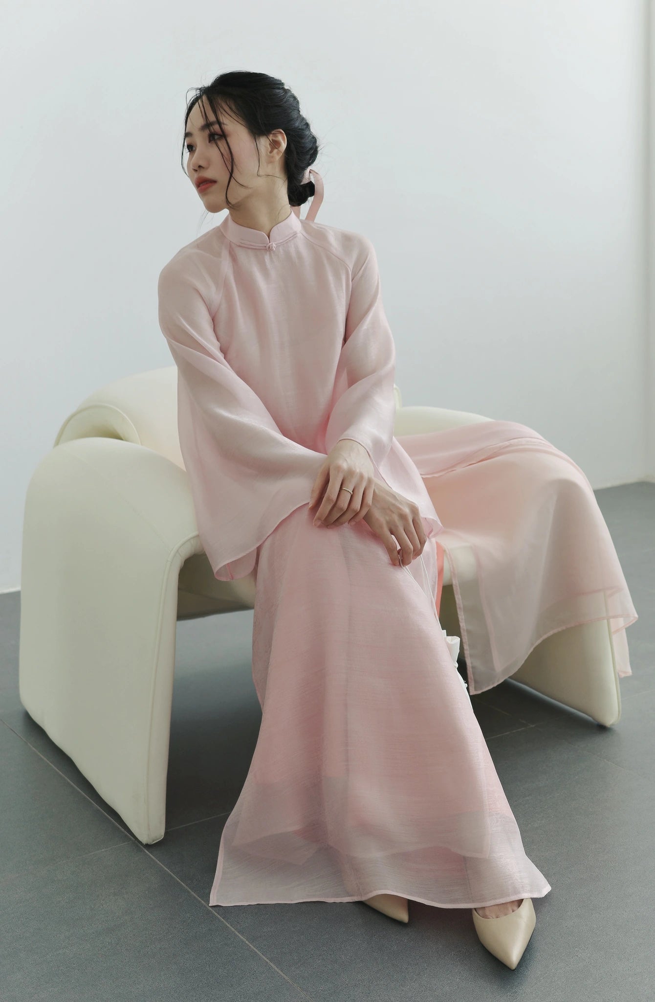 Set áo dài phom rộng màu hồng nhạt - S1994C