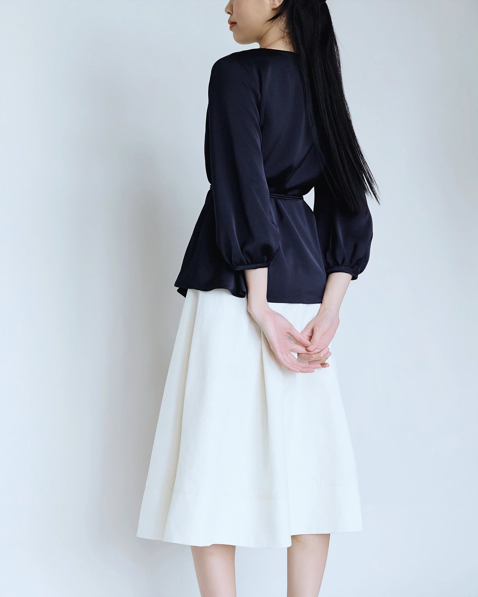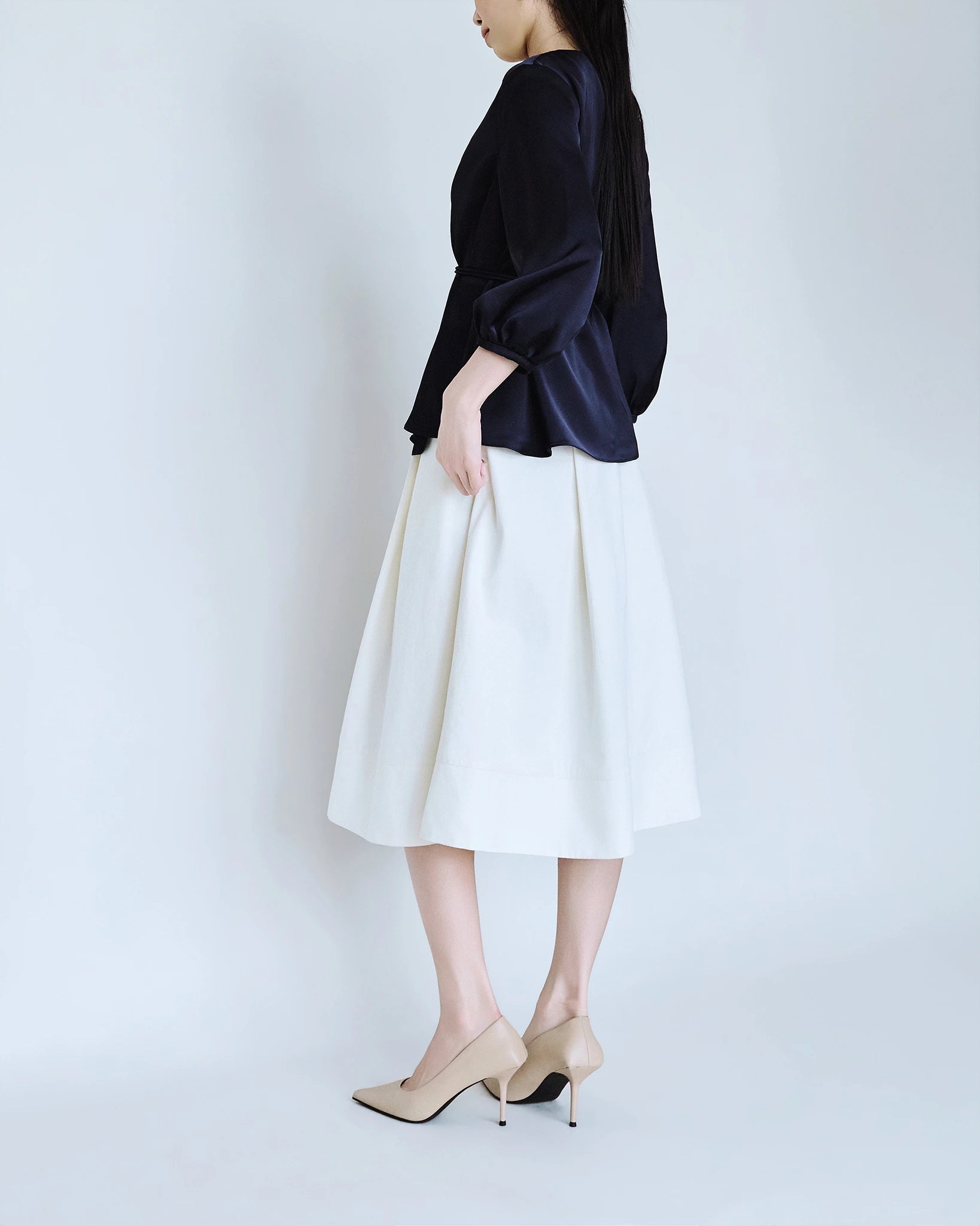 Với chất liệu satin mềm mại cùng màu xanh navy sang tọng rất dễ dàng để phối cùng nhiều kiểu quần vá váy khác nhau để tạo nên những set đồ của riêng bạn.