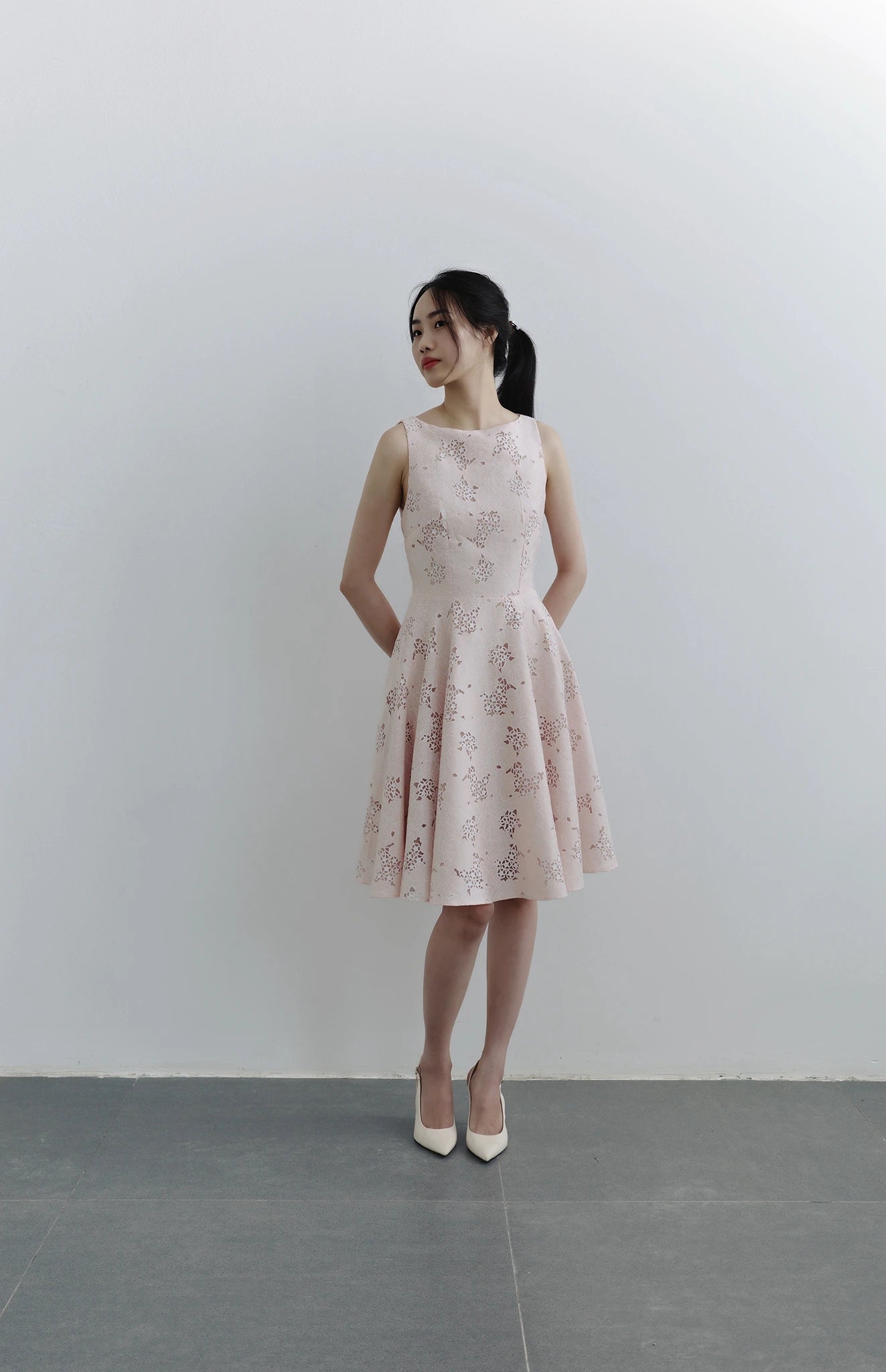 Đầm cổ thuyền không tay, dáng váy xòe nhẹ nhàng - D2023
