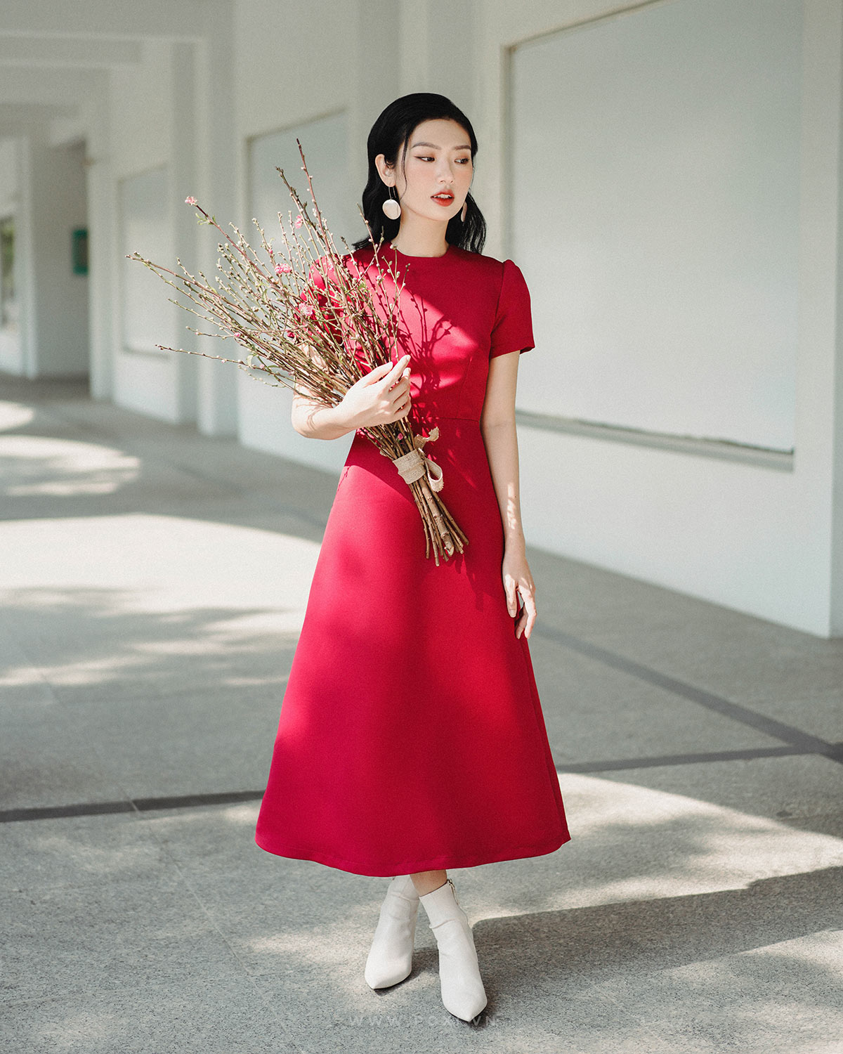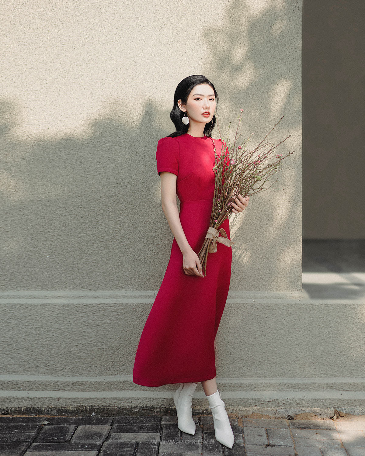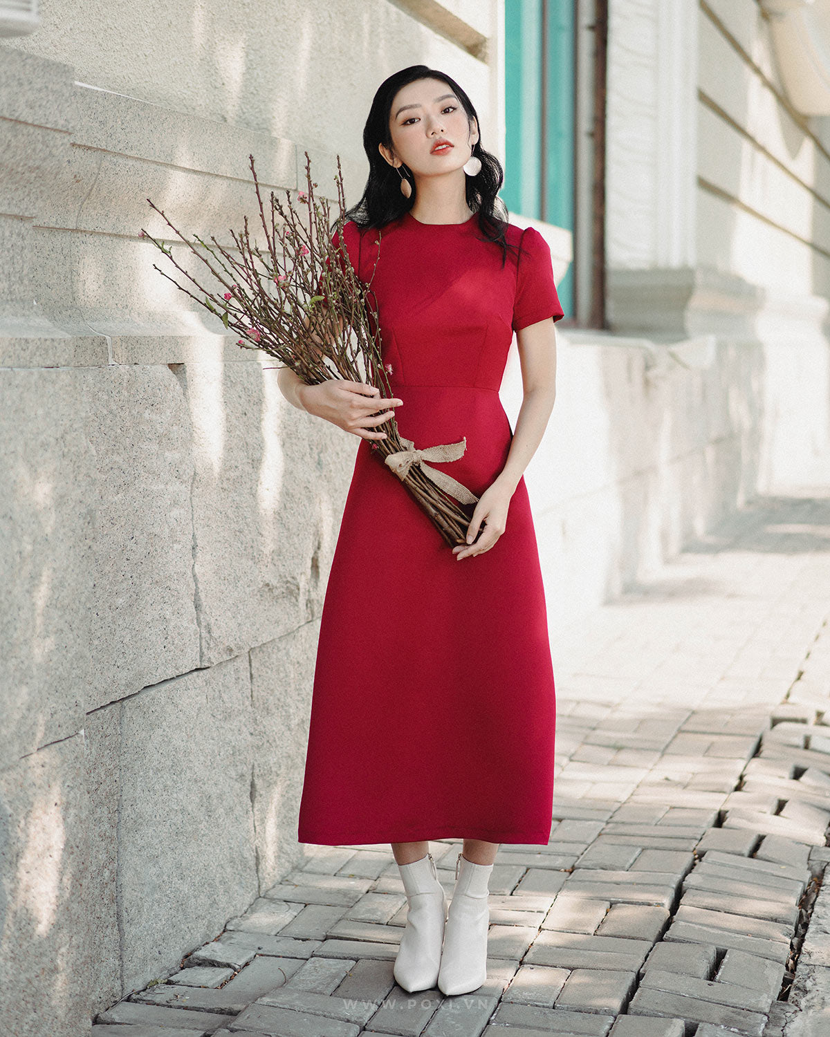 Phom đầm cơ bản với chiều dài midi vừa phải cùng những đường cắt may tinh tế luôn là lựa chọn lý tưởng cho các cô nàng có thể ứng dụng trong nhiều dịp khác nhau như đi làm, đi tiệc hay dạo phố cùng bạn bè.