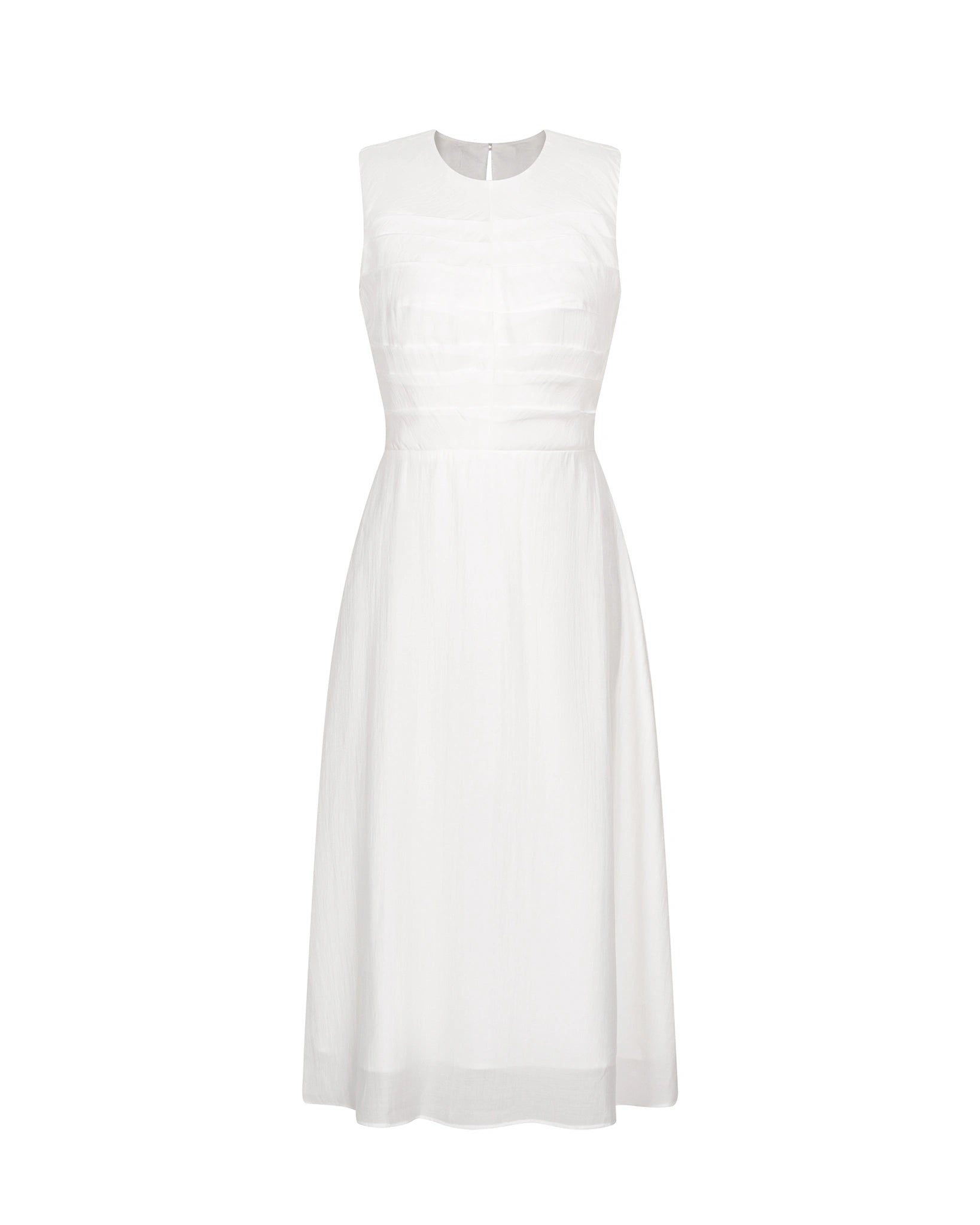 Đầm midi cổ tròn xếp ly thân trên, dáng váy Aline xòe nhẹ - D2006