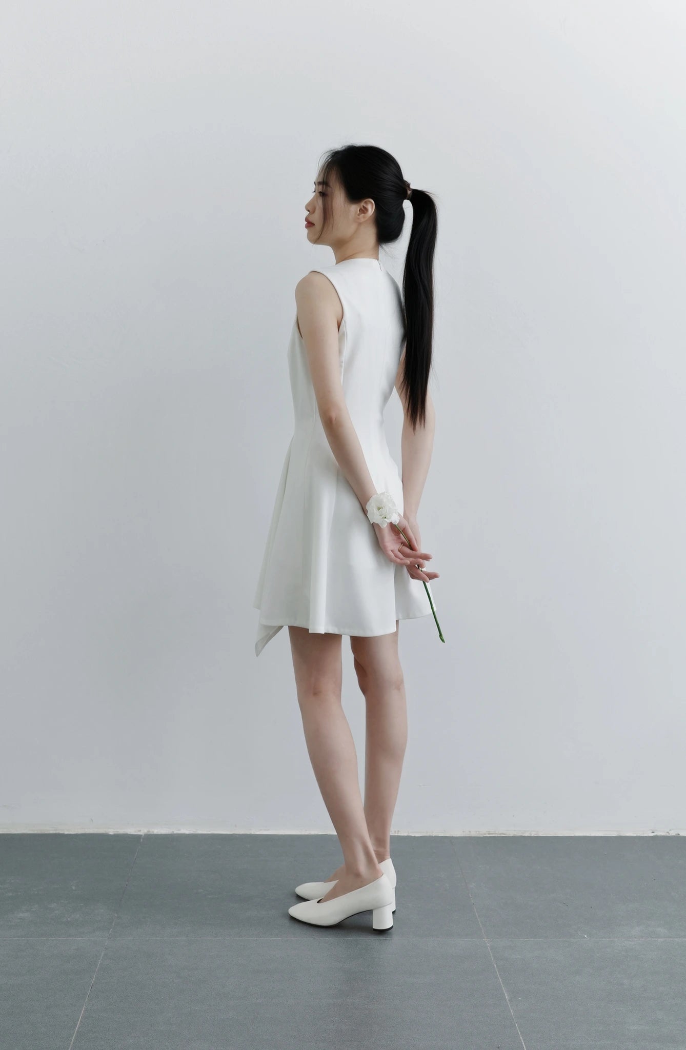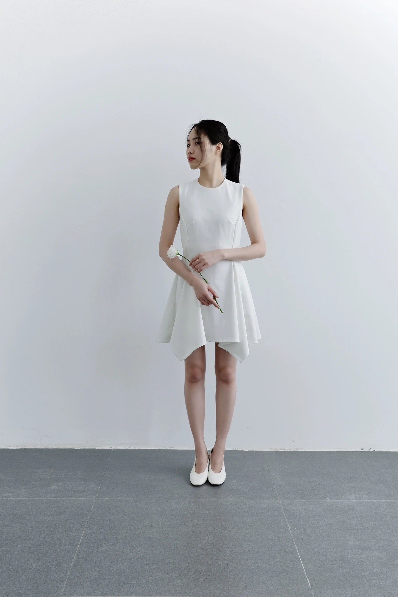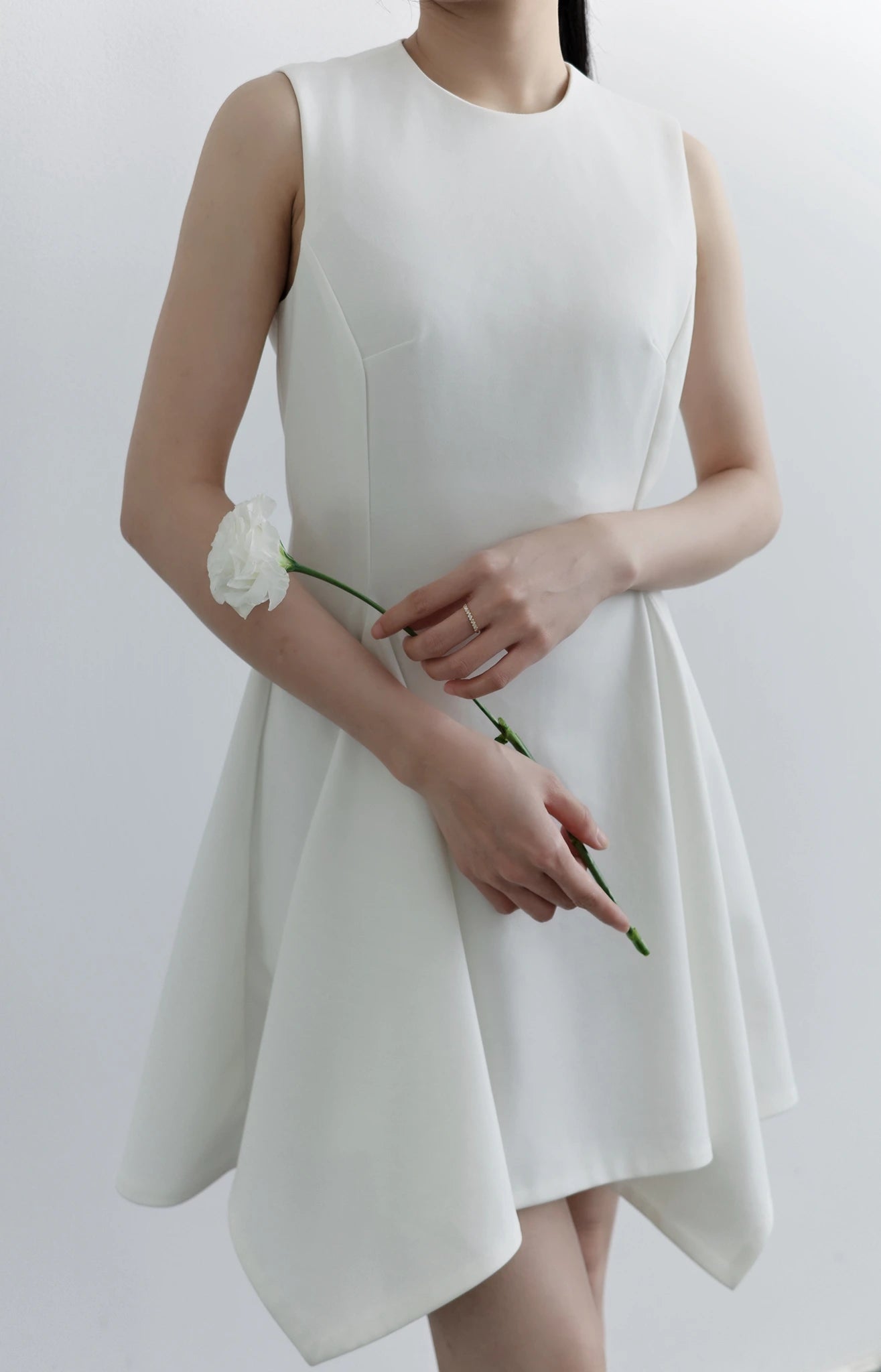 Đầm mini không tay cổ tròn, dáng váy xòe bất đối xứng - D2031