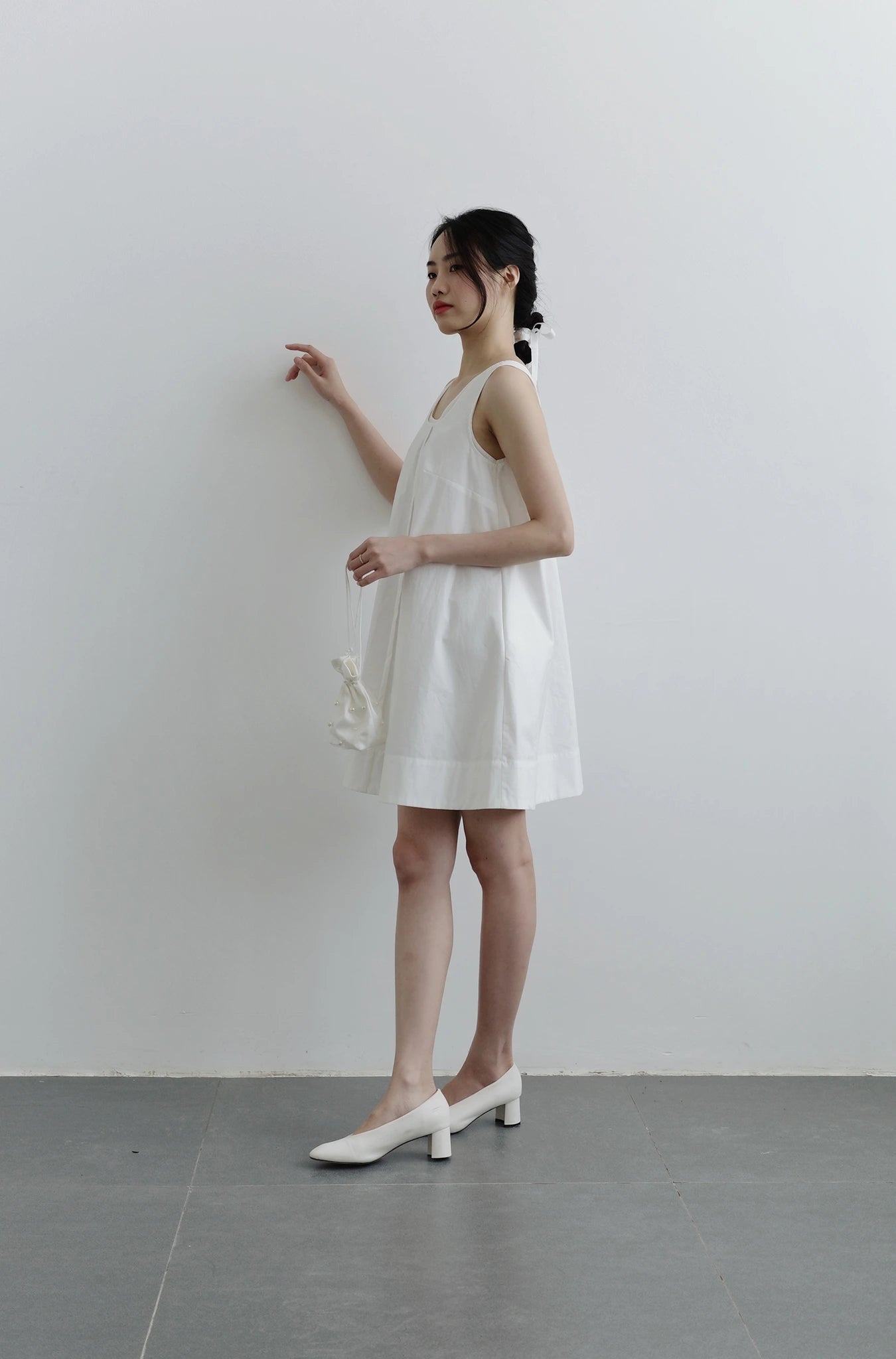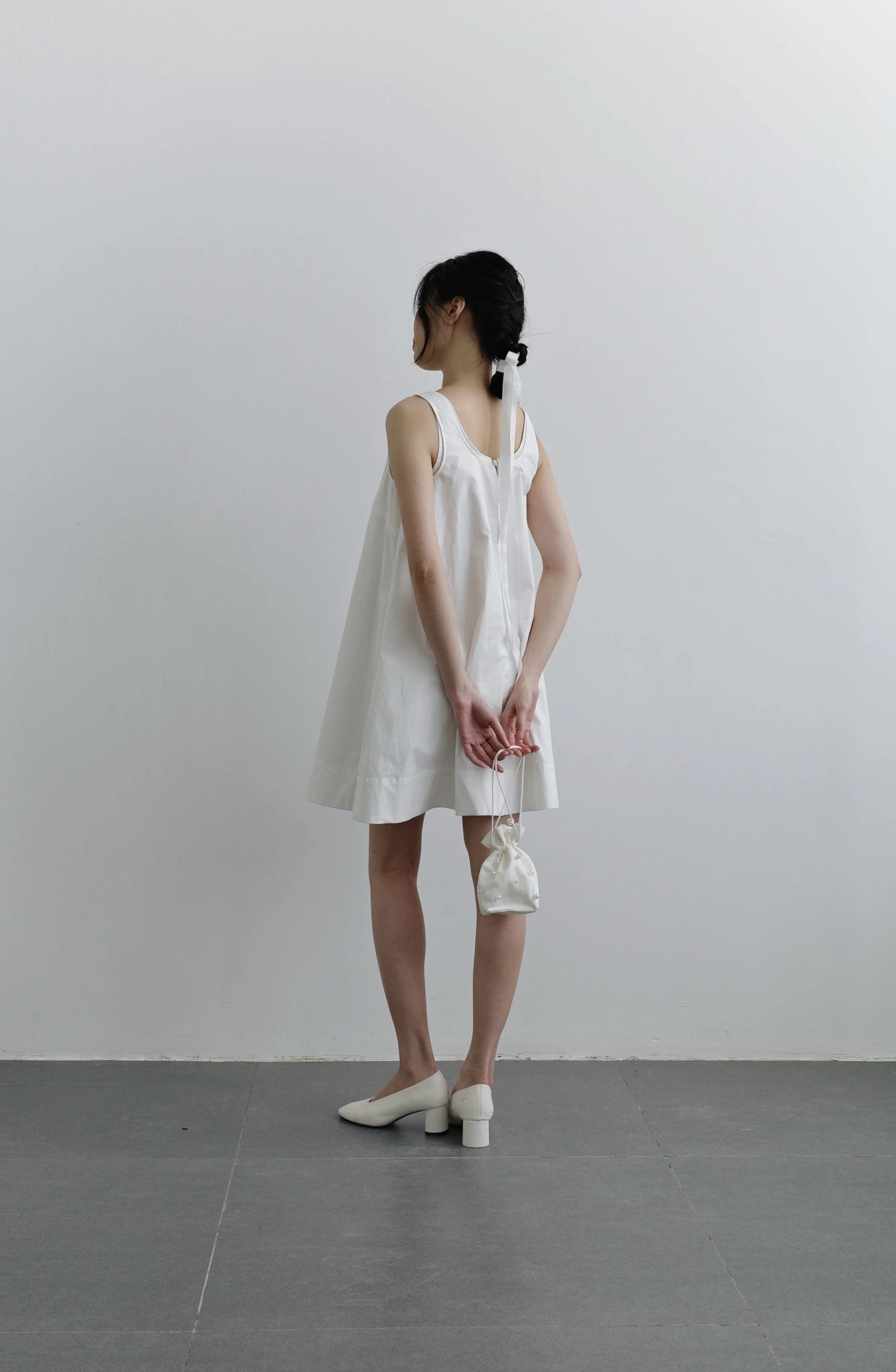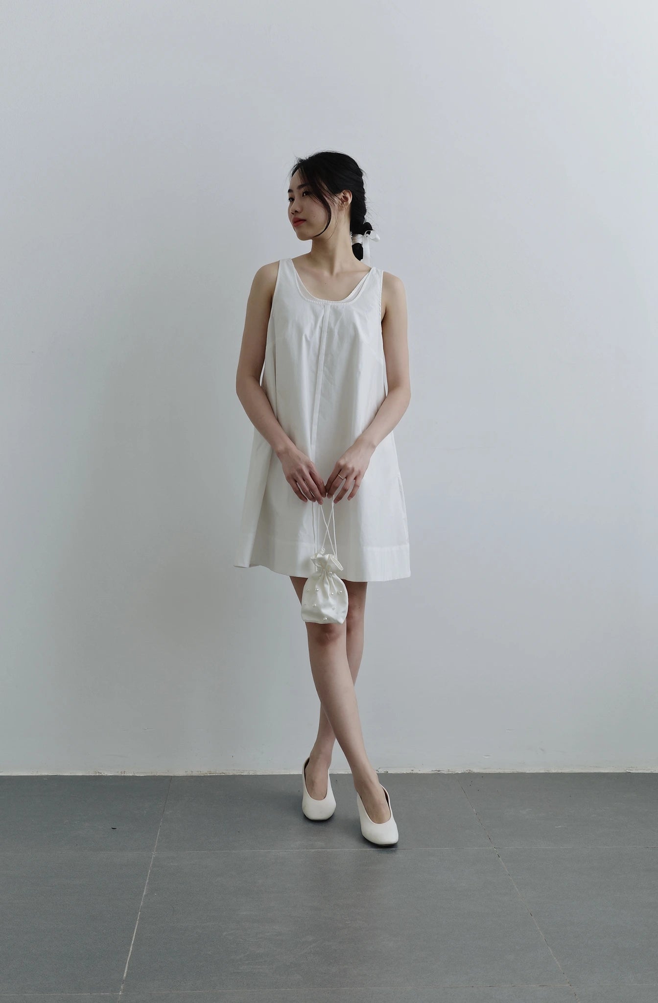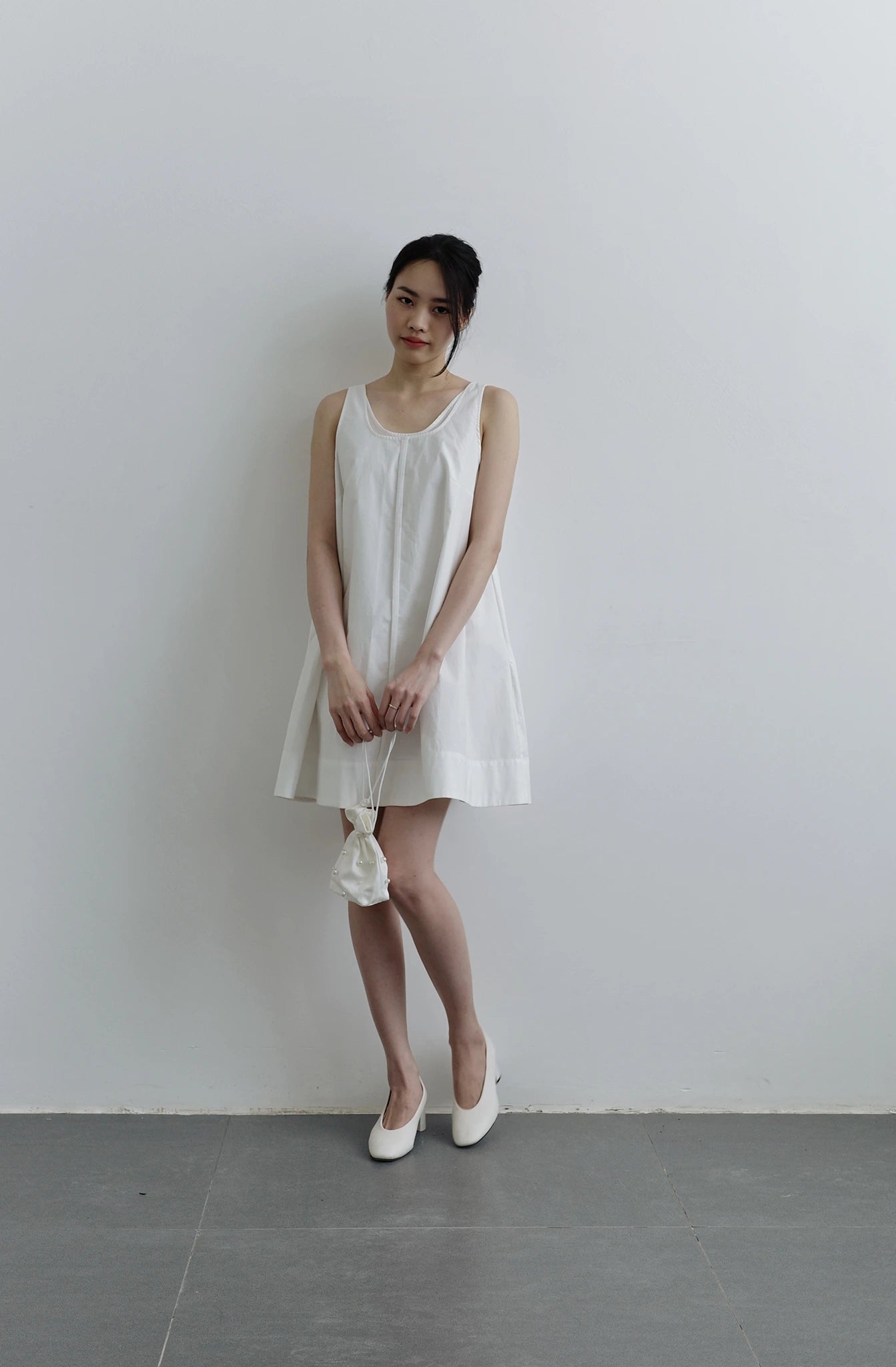 Đầm nữ màu trắng form rộng không tay.