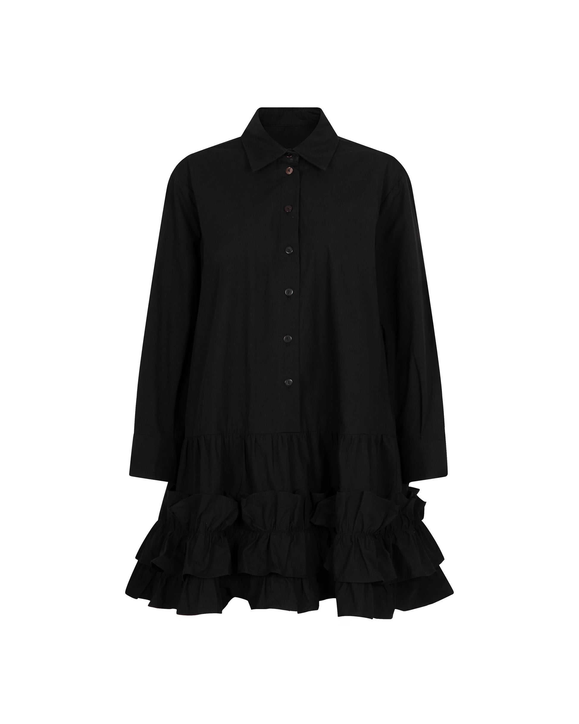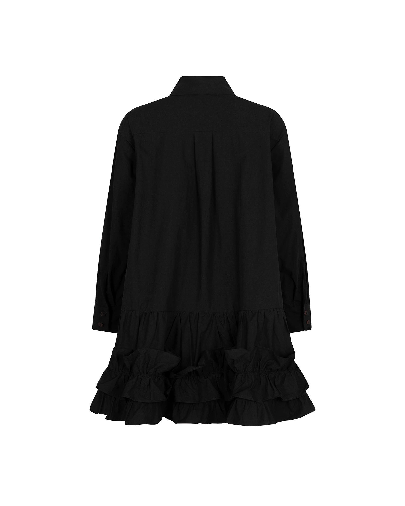 Đầm sơ mi thanh lịch với điểm nhấn là chi tiết bèo nhún váy ấn tượng và chiều dài ngắn trên gối mang đến dáng vẻ năng động, trẻ trung cho các cô gái. Với chiếc đầm này bạn có thể mặc đi làm hoặc đi chơi đều rất phù hợp.