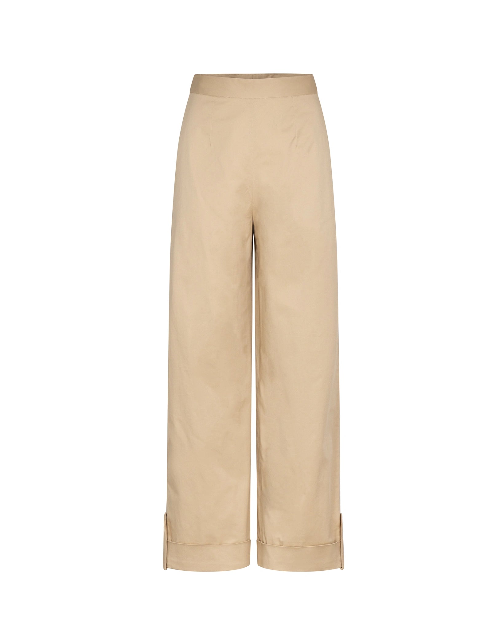 Quần tây nữ ống đứng màu be lai gập to bản - YT9925B
