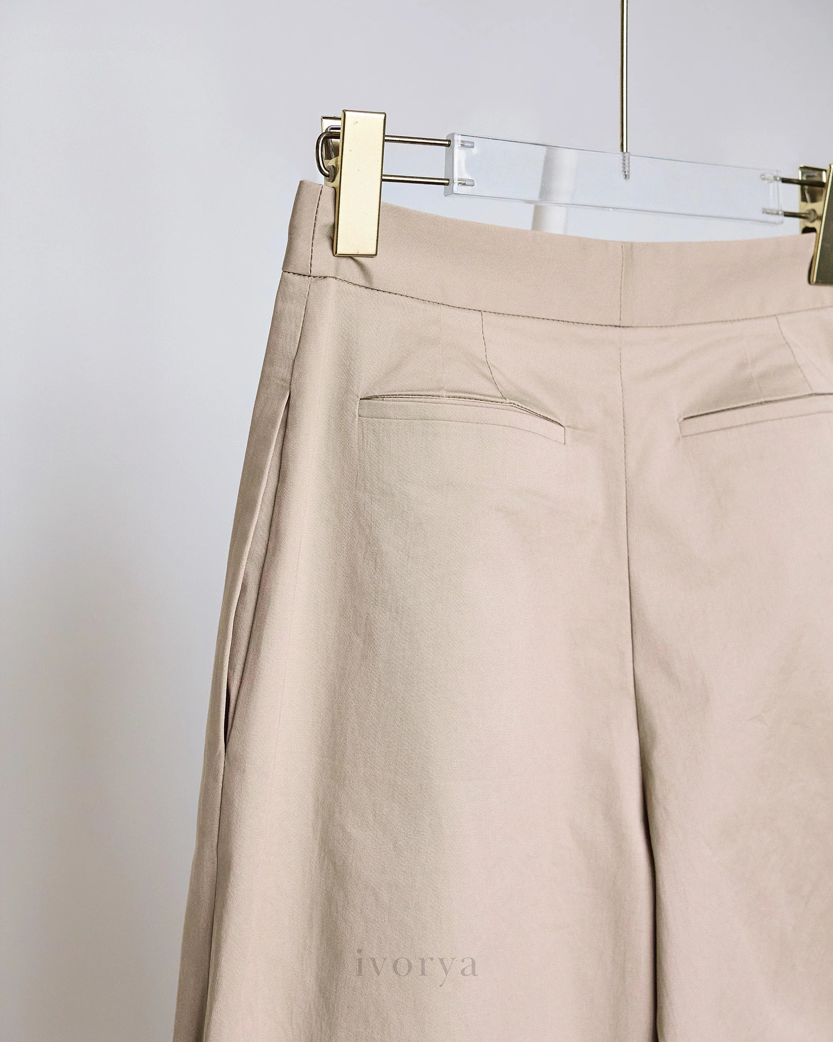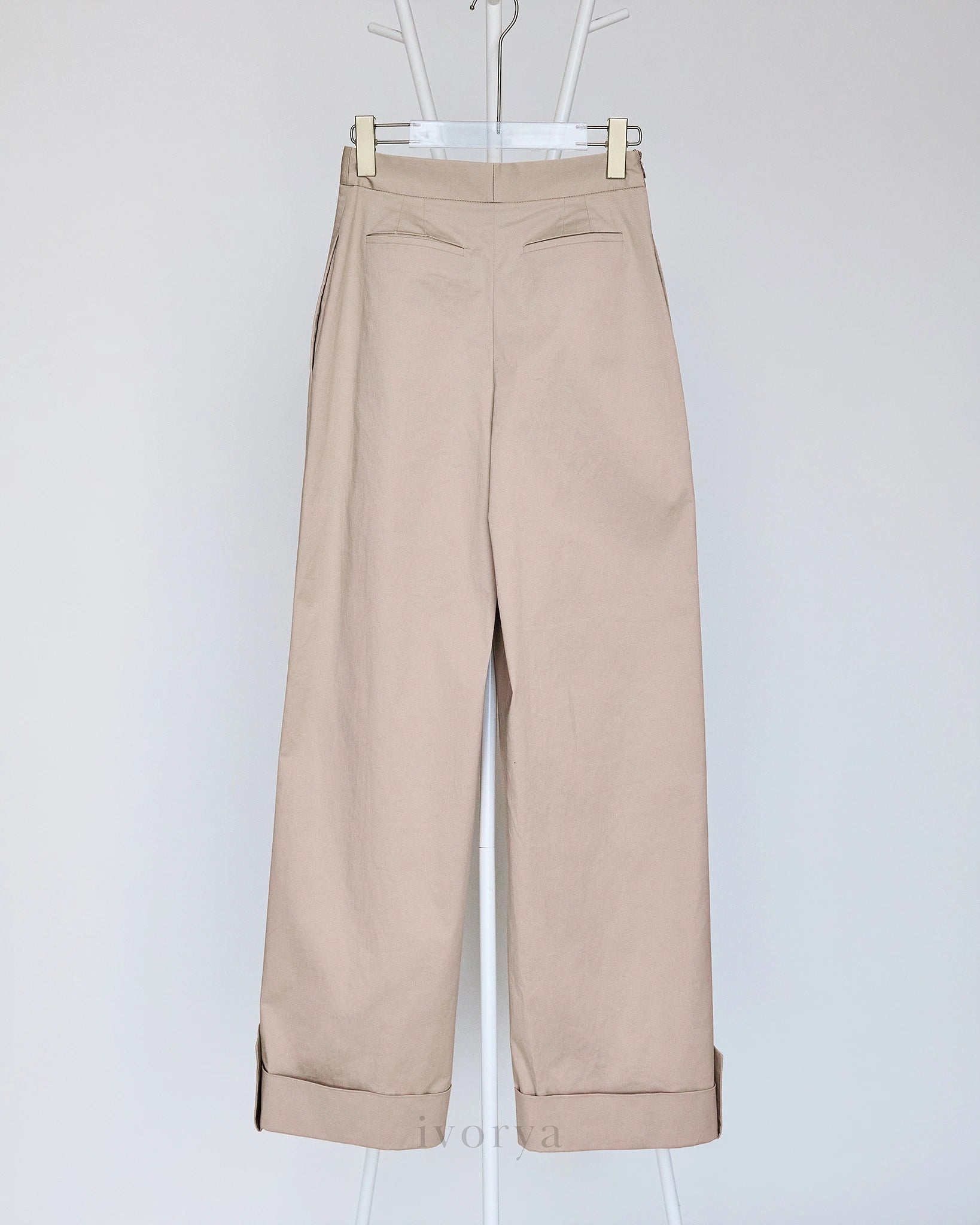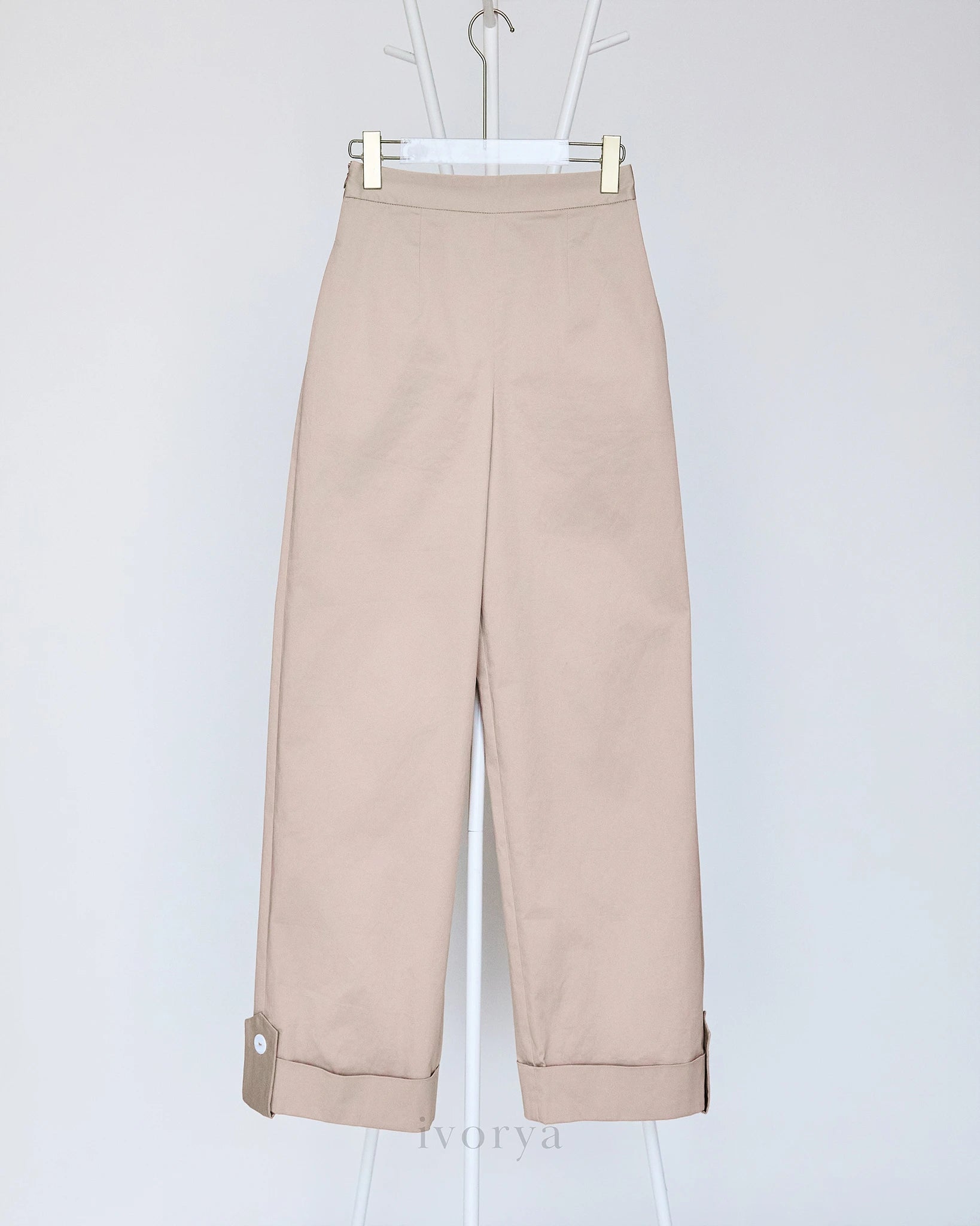 Quần tây nữ ống đứng màu be lai gập to bản - YT9925B